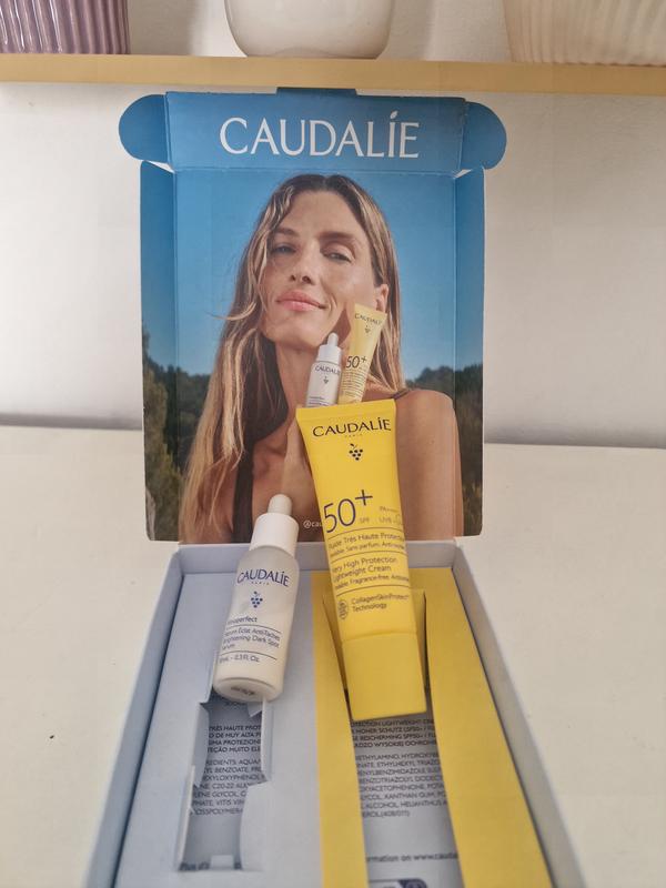 - Viniferina : Ingrediente brevettato di Caudalie estratto dalla linfa di vite, assicura un’azione anti-macchie eccezionale, 62 volte* più efficace della Vitamina C e 43% superiore alla Niacinamide al 10%**. *Test in vitro dell’azione inibitrice della Viniferina sulla tirosinasi. **Test ex vivo sulla quantità di melanina nell'epidermide.